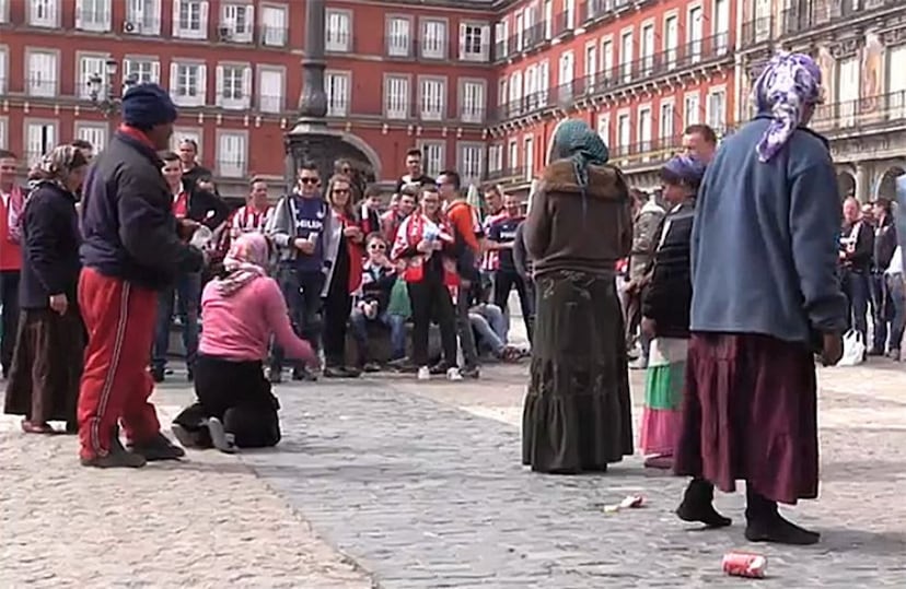 El altercado ocurrió en marzo de 2016. Un grupo de seguidores del PSV Eindhoven ocupó las terrazas que rodean la plaza Mayor, uno de los lugares más turísticos de la ciudad. Las mujeres que mendigan por esa zona se acercaron a pedirles algunas monedas. Los hombres, acalorados en un día de sol y con jarras de cerveza en la mano, comenzaron a lanzarles al aire para que las recogieran del suelo. El asunto fue a más. A alguno le pareció gracioso el espectáculo y les pidió a que bailaran o hicieran flexiones. El momento lo recogieron en vídeo Pablo Vande Rusten e Ignacio Camacho, entonces alumnos de la Escuela de Periodismo UAM-EL PAÍS.