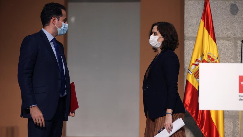 La situación, efectivamente, amenaza con descarrilar el jueves. Ignacio Aguado, el vicepresidente regional, protagoniza una comparecencia sin preguntas en la que pide que el Gobierno de España “se implique de manera contundente” en la gestión de la pandemia. Ni él ni su equipo aclaran si lo que está solicitando es que se aplique el estado de alarma en la región, una opción que Díaz Ayuso rechaza. La inquietud crece en el PP, que observa con recelos al líder de Cs desde que el PSOE le lanza una y otra vez cantos de sirena para que se sume a una moción de censura contra la presidenta.