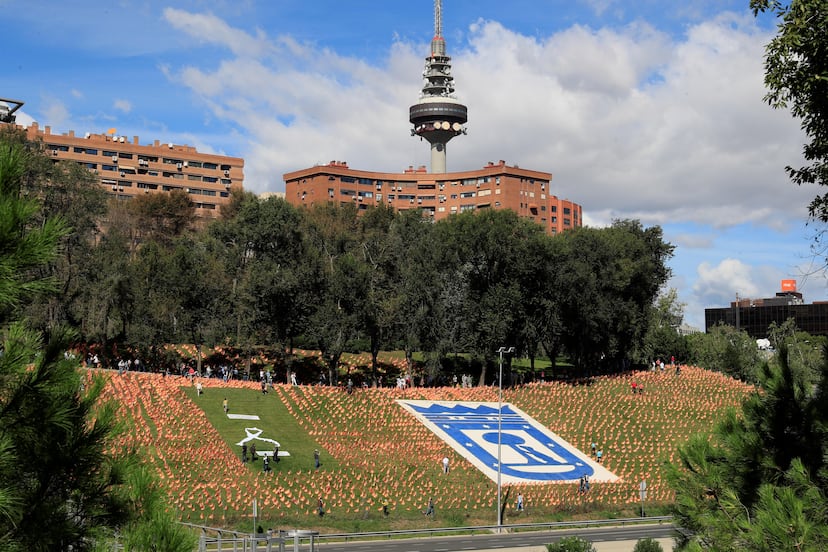 Más de 50.000 banderines de España en un parque de Madrid en memoria de las víctimas de la covid