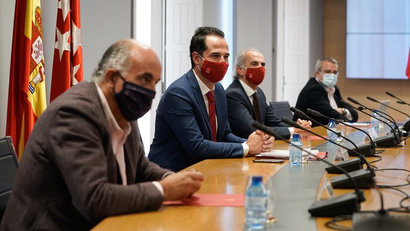 La reunión, que ha acabado con acuerdo, ha comenzado a las seis de la tarde en el edificio de la Vicepresidencia del Gobierno de Madrid, la casa de Ignacio Aguado, de Ciudadanos, que cogobierna la comunidad con el PP, y ha terminado pasadas las dos horas. El líder de Ciudadanos en la región se distanció en los últimos días de la batalla mediática entre La Moncloa y la Puerta de Sol. Anoche se anotó un tanto político con este acuerdo. Algunas voces dentro de los populares empezaron a sugerir tímidamente en privado a principios de semana que se deberían aplicar más medidas para doblegar la curva de contagios en la región. “Nosotros no lo descartamos”, insistieron anoche en el entorno de Díaz Ayuso; “pero vamos a ir paso a paso. No se puede cerrar Madrid. Eso sería lo más fácil. Hay que conjugar el equilibrio entre la economía y la salud”, responden en la Puerta del Sol.