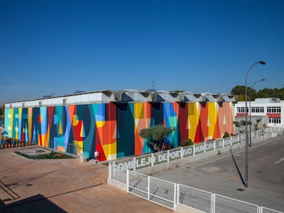 Getafe no limpiará las fachadas del polideportivo de la Alhóndiga, el último edificio construido por Miguel Fisac (1913-2006), pintadas el pasado septiembre por el colectivo Boa Mistura por encargo del Ayuntamiento dentro del festival Cultura Inquieta. El pleno municipal celebrado este miércoles ha rechazado la propuesta del PP para revertir la intervención colorista que "ha dañado” la arquitectura, gracias a los siete votos de abstención de Podemos, Más Madrid y Vox y a los 11 votos en contra del PSOE. A favor de devolver el conjunto a su estado original han votado PP y Ciudadanos, nueve en total.