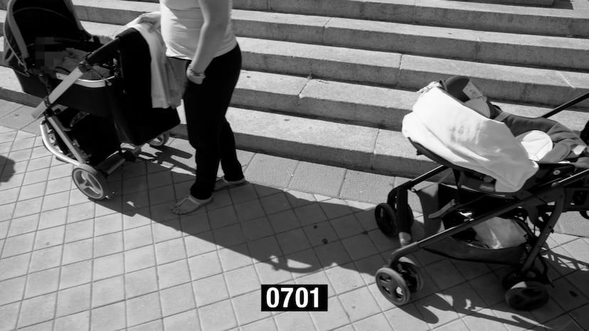 En el vídeo hay más empobrecimiento que pobreza. Maletas, carritos de la compra, mochilas, bolsas de plástico, zapatillas, vaqueros, leggins, chándal, camisas y sudaderas… y la calle de la ciudad abarrotada, a la espera de la ayuda para comer. La imagen corre lentamente en paralelo a la fila, cortando los rostros y la identidad de los integrantes. Lo ha hecho en silencio y en blanco y negro, porque Picasso usó el blanco y negro para subrayar, recuerda Sierra, la “oscuridad y brutalidad” de lo que buscaba. “Es un anacronismo que expresa tal vez mis resistencias a entregarme a un presente que me espanta”, indica. El escenario son las calles de la ciudad, de donde ha desaparecido la antigua normalidad.