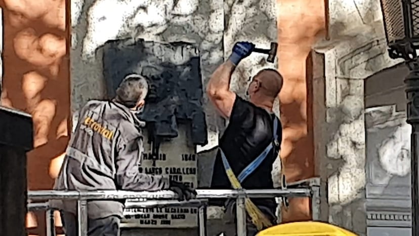 La placa fue retirada a martillazos por dos operarios el pasado 15 de octubre y fue hallada el 6 de noviembre en un almacén municipal hecha añicos. Numerosos historiadores han criticado una decisión que lleva semanas generando enfrentamientos entre Gobierno y oposición.