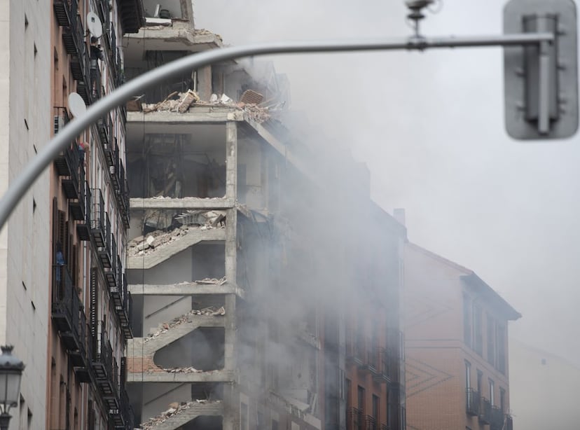 Primero, el ruido. Luego, la fachada principal del edificio de siete alturas se ha desplomado sobre la calzada. Los muros vuelan y una cortina de polvo y humo hace desaparecer la calle unos treinta metros durante varios segundos. No se puede ver el final de la cuesta abajo, que acaba en la Puerta de Toledo. El estallido ha roto la normalidad. Estamos inmóviles tratando de entender qué ha pasado a 50 metros de nosotros. La posibilidad de un atentado se ha vuelto imposible, sobre todo para alguien que ha vivido en los noventa en una de las zonas de Madrid más torturadas por ETA. La nube se despe...