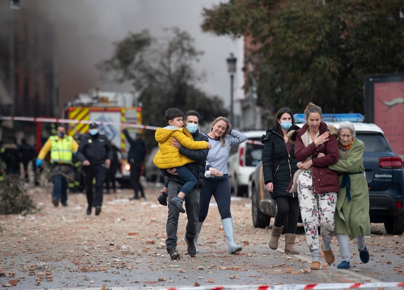 Nueve dotaciones de Bomberos de Madrid y 11 unidades de Samur se han desplazado al lugar, que está acordonado por la policía. Los agentes han desalojado a vecinos y viandantes. “Estábamos a 400 metros y he escuchado la explosión. Nos han evacuado a todos los residentes”, afirma Juan Miguel Estepa, trabajador de la residencia Los Nogales. Una mujer que acababa de bajar del autobús cuando oyó la explosión, a escasos 50 o 100 metros, ha explicado que vio “un cuerpo tendido en el suelo”, aunque no se atreve a decir si era un herido o un fallecido. Poco después, esta profesora empezaba sus clases online y llegó a su casa, en la plaza de Cascorro, temblando del susto.
