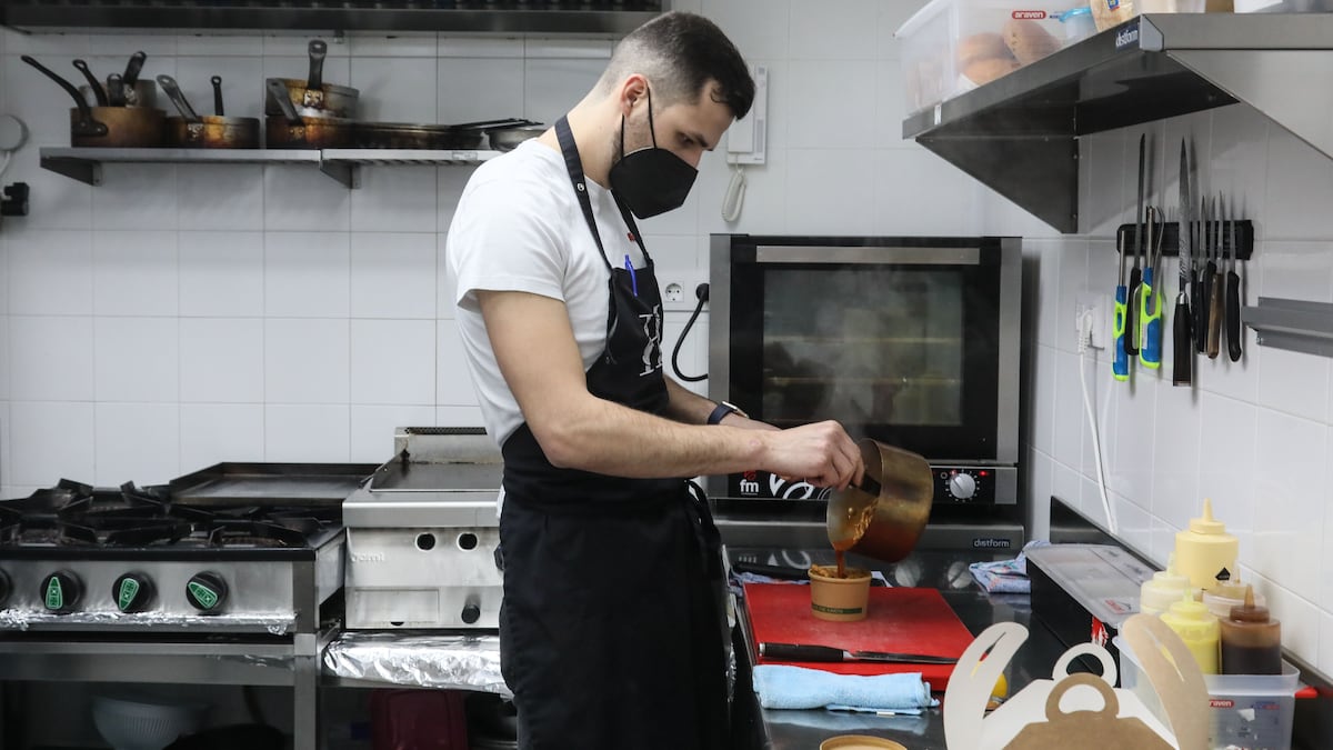 “Estuve en casa dos meses, hasta que se me ocurrió montar algo para preparar comida a domicilio para mis amigos y conocidos; algo muy informal. Un día pidió Juan, le gustó y me propuso empezar esto”, cuenta el cocinero, uniformado con delantal y mascarilla estampados con el logo de la marca, sentado en el sofá de la pequeña sala de descanso equipada con televisión y PlayStation que hace de oficina. ”Entre semana tenemos unos 30 pedidos al día y, los fines de semana, más de 300, la mayoría después de las nueve”, explica Gaitán. “A la larga nos gustaría tener un local físico, pero en la situación actual esto es más seguro”.