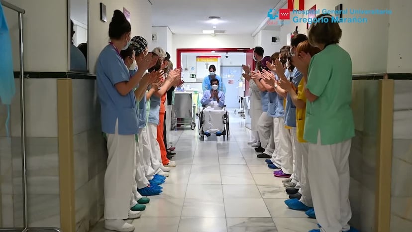 En silla de ruedas y ovacionado por un grupo del personal sanitario es como Francisco Javier Solís, de 52 años de edad, se ha marchado del Hospital General Universitario Gregorio Marañón tras permanecer tres meses ingresado. Él se ha convertido en el paciente 5.000 que puede decir que ha superado el virus y ha vencido al covid en este centro hospitalario. Desde que ingresó el 9 de diciembre del 2020, la mayor parte del tiempo lo ha pasado sedado en la UCI y con soporte ventilatorio. El Marañón ha sido uno de los hospitales en España que más pacientes covid ha atendido, registrando un periodo en el pico de la pandemia en el que prestaba atención sanitaria a más de 1.000 pacientes hospitalizados por coronavirus simultáneamente y ha atendido más de 16.000 casos en total, informa el centro.