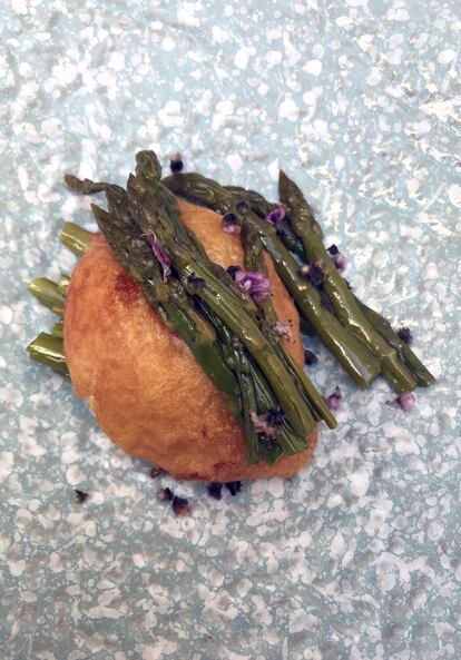 Además, en su carta cuenta con homenajes castizos: callos muy tiernos que elabora con ternera de Angus y un sofrito de cebolla, tomate y pimiento (14 euros) o unos canelones con salsa pepitoria (14 euros). Destaca también el lomo de vacuno madurado a la brasa (25 euros) y el ragout de morcillo de buey gallego que presenta como ‘cocinado a la antigua’ (22 euros). “Esto no es otra cosa que hacerlo lentamente”, explica. “Todos estos guisos necesitan muchas horas y hay que cocinarlos despacito hasta que estén bien tiernos”, aclara. A Joaquín le obsesiona que todo sea saludable. “No utilizo nunca potenciadores de sabores con polvos. Busco el sabor con la cocción, con productos muy umami como el tomate, la anchoa, la cebolla o el ajo”, afirma. Y lo logra. Profesión, talento y pasión no le faltan.