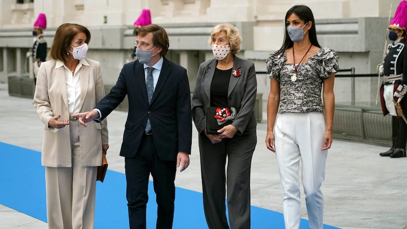 Aunque las fiestas patronales sigan rebajadas por segundo año consecutivo a causa de la pandemia, la agenda institucional se ha mantenido con las medallas de honor a las dos exalcaldesas de la capital, Ana Botella (PP) y Manuela Carmena (Ahora Madrid), que han tenido como anfitrión al actual regidor, José Luis Martínez-Almeida (PP). Ellas han sido las protagonistas de un acto lo más multitudinario posible en cantidad y variedad de invitados en el patio de cristales del Palacio de Cibeles. Carmena ha querido destacar también el hecho de que un equipo de gobierno, como el del PP y Ciudadanos, alejado de su “visión e ideología”, haya agradecido su labor al frente del Consistorio.