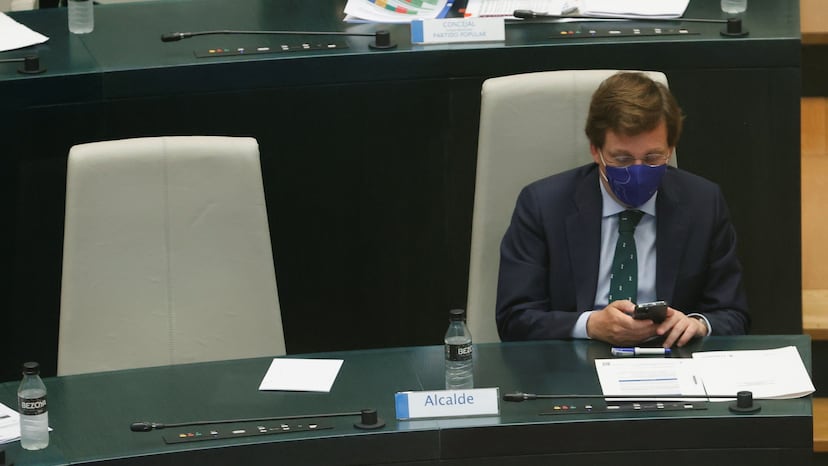 Una hora después de que finalizara el nuevo horario de planchado en España comenzaba un pleno extraordinario en el Ayuntamiento de Madrid. El calendario de junio ha arrancado en la capital de España con la aprobación de dos nuevas ordenanzas: una sobre el nuevo reglamento de los 21 distritos del Ayuntamiento y otra, más polémica, sobre los taxis. La mañana se inició con dos grandes ausencias. El alcalde, José Luis Martínez Almeida (PP), estaba en un desayuno informativo con el jefe del PP, Pablo Casado, y la vicealcaldesa, Begoña Villacís (Cs), en una entrevista en TVE. Lo primero es lo primero. En los corrillos periodísticos de los pasillos se barruntaba un pleno lleno de bajas. Tampoco estaba el portavoz socialista, Pepu Hernández. A las 9.14, sin embargo, Almeida apareció sonriente y por sorpresa por la puerta con un traje azul. Y a las 9.22, la vicealcaldesa. De Hernández, ni rastro.