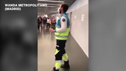 Jorge Prieto González (Madrid, 25 años) bebe colacao y nunca café y ha escrito un libro, La enfermería de emergencias: 50 relatos breves para pensar. Jugaba al fútbol y al ajedrez, estudió nueve años de conservatorio con flauta travesera y el 12 de enero de 2014, con 18 años, sufrió el primero de cuatro neumotórax en tres meses. Es un colapso pulmonar que se produce cuando el aire va hacia donde no debe y acaba en el hueco que hay entre los pulmones y la pared torácica. Ese día lo recogió el Summa 112 en su casa de entonces, la de sus padres, en la calle de Raimundo Fernández Villaverde, en la línea que separa Chamberí de Tetuán. Lo llevaron a La Paz, donde le tocaba, donde nació. Fue entonces cuando Prieto empezó a pensar que igual Derecho en la Complutense no era del todo lo que quería y empezó a mirar aquí y allí cómo funcionaba eso de los sanitarios del Summa. Pasaron muchas cosas entremedias, pero este miércoles, este hombre que le saca una cabeza a casi cualquiera se hizo viral porque acabó siendo enfermero de emergencias, “el enfermero del Wanda”, se le llama en redes.