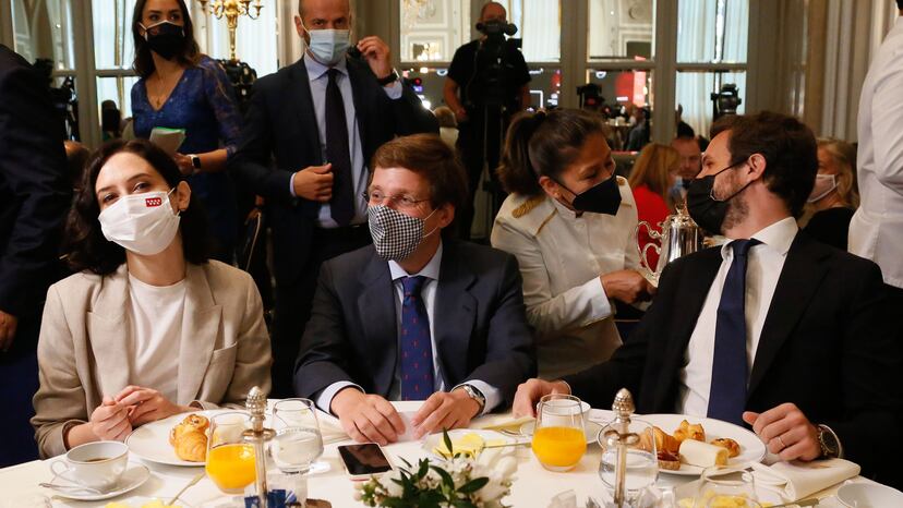 Y sin medias tintas, lanzó su discurso: “Me sigue pareciendo una humillación que el Rey tenga que firmar los indultos. No he rectificado”. La presidenta, incluso, llegó a autopreguntarse como si fuera una periodista: “¿Sobre Pablo Casado? Piensa lo mismo que yo”. Y sonriente, saludó a los presentes y se sentó en otra mesa redonda junto a Casado, Villacís y la delegada del Gobierno. El discurso de Almeida, que básicamente fue un balance de sus dos años de mandato con Ciudadanos, se solapó de inmediato. Ayuso acaparó todos los titulares de los diarios y de las televisiones en un día señalado en rojo por el equipo del alcalde.