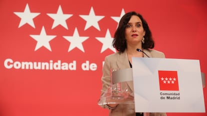 La presidenta de Madrid suele aceptar preguntas en la mayoría de sus actos. Sin embargo, desde el viernes, cuando fue investida como presidenta regional, la líder conservadora no ha ofrecido ninguna rueda de prensa, aunque sí ha protagonizado numerosos actos institucionales y varias entrevistas radiofónicas y televisivas. Su agenda ha estado repleta. El sábado fue su toma de posesión. El lunes, la de sus consejeros. El martes compartió acto con el consejero de Interior, Enrique López, al que dejó lidiando con las preguntas de los periodistas. Y este miércoles, tras su declaración institucional, ha inaugurado un congreso médico sobre la covid en el Hospital Isabel Zendal.