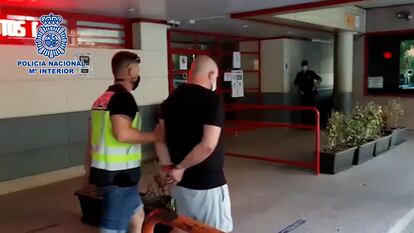 En las imágenes en las que se le ve tras caer en Azuqueca de Henares camina cabizbajo y esposado, con camiseta negra y pantalones de chándal cortos. Rodeado de dos agentes. Dos de los que él quiso hacer pasar por compañeros hasta el punto final a su huida.