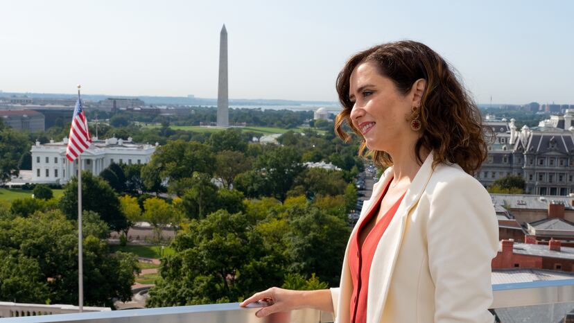 “El estar en reuniones de calado político es muy importante, porque quieren entender cuál es el sentido de nuestra Administración”, defiende la presidenta de Madrid tras reunirse en Washington con el think tank Global Americans, que es quien le presta ese balcón con vistas a la Casa Blanca para una entrevista. “Hacía falta este impulso. Cada vez lo tengo más claro. Va a ser un revulsivo”, añade. “El propósito de este viaje ha sido dar a conocer a la Comunidad de Madrid como un lugar para invertir, así como seguir fomentando la cultura española y la Hispanidad”, resume en su despedida. Y diagnostica: “Los impuestos y el exceso de burocracia son un lastre para la inversión para España, nos perjudica abiertamente, así como la gestión de visados para el inversor”.