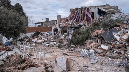 Un sofá azul destaca en medio del montón de escombros al que quedó reducida lo que era una casa en la Cañada Real en Madrid. No se trata de un derribo más en este área que vive demoliciones periódicas por el realojo en pisos de sus residentes, sino que aquí se escondía una plantación de marihuana controlada por el clan del Jabalí. A solo unos metros, otra montaña de cemento y otros materiales se eleva en lo que ahora es un solar en el que solo permanecen en pie cinco sillas blancas de plástico. Estas dos edificaciones destruidas el 18 de marzo en medio de un intenso olor a marihuana formaban parte de un entramado que se dedicaba al narcotráfico con más de 17.500 plantas ocultas en casas alrededor de la finca del cabecilla de la red. En esta operación conjunta de la Policía y la Guardia Civil han caído 44 miembros del grupo criminal.