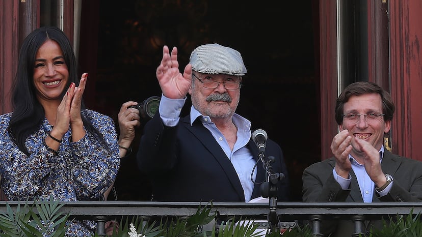 El alcalde, José Luis Martínez-Almeida, le siguió el juego durante unos segundos. Los dos emularon la mítica escena de Bienvenido, Mr. Marshal, de Luis García Berlanga, ante la atenta mirada del hijo del director. “Quiero rendirle un homenaje por su centenario [...]. Es un verdadero honor estar aquí con todos vosotros. No os podéis imaginar la ilusión que me hace. Desde los tres meses viví en Sainz de Baranda, paseaba por sus bulevares, nos llevaban a jugar al Retiro, mi colegio estaba en el barrio del Niño Jesús. A los 10 años me fui a Chamberí, donde iba al cine”. Con pausas y numerosos aplausos de sanitarios que habían venido a aplaudirle por sus continuos gestos de defensa de la sanidad pública, habló también de su hijo Ricardo, madrileño y de 35 años, de sus amigos cineastas, como Carlos Boyero o Fernando Trueba, con los que paseaba por Malasaña durante su juventud. “He rodado muchas películas y series aquí. Vivir en Madrid es un placer y un lujo”.