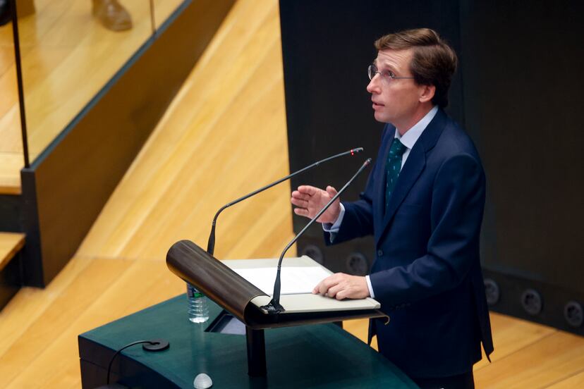 No da tiempo. Ayuso ni siquiera se ha quedado a escuchar todo el discurso de alcalde. La capital de España afrontaba este martes cómo se encuentra internamente. Su día a día. Las visiones políticas de unos y de otros. La política municipal capitalina atraviesa un periodo raro. Almeida comenzó con un anuncio a bombo y platillo: un clásico de estos debates. “Vamos a construir un distrito financiero. Vamos a competir con la City de Londres y va a ser un símbolo para la ciudad”, dice el regidor a los 10 minutos de discurso. Así pues, Madrid contará en unas semanas con 22 distritos. Los bancos financieros que se instalen serán otra historia. Los titulares ―que era el objetivo de su equipo― ya estaban en marcha. La idea, sin embargo, no es nueva. Ya fue anunciada por Manuela Carmena en 2018.