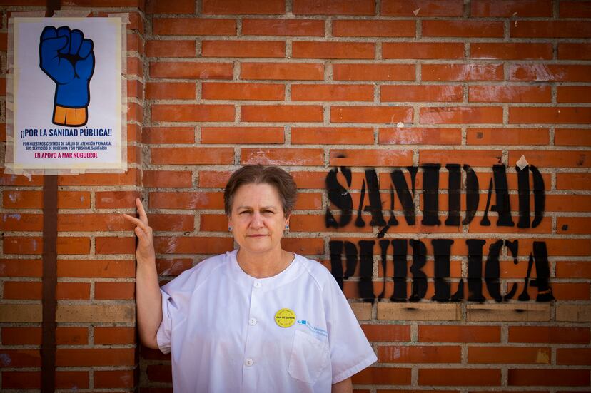 Mar Noguerol, de 62 años, se mueve por el centro de salud de Cuzco, en Fuenlabrada, al sur de Madrid, como si estuviera en el salón de su casa. Trabaja ahí como médico de familia desde hace 25 años. Es la directora desde hace seis. Es una de las caras más conocidas de la defensa de la sanidad pública desde hace una década, cuando explotó la marea blanca que consiguió frenar la privatización de la gestión de la sanidad madrileña. Protagonizó un discurso en la puerta de su centro de salud que se ...
