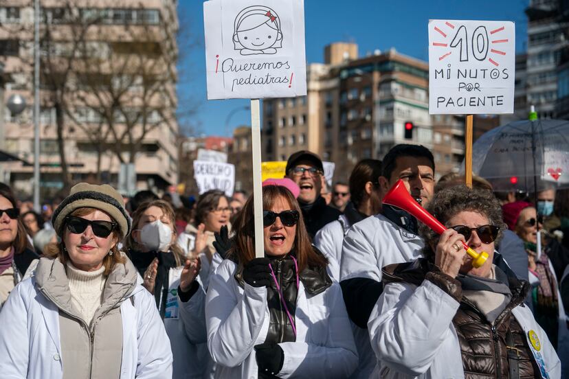 El PP y el Gobierno de Madrid se han enrocado este domingo en la tesis que llevan defendiendo desde que estalló el conflicto en la sanidad pública en septiembre, un sector que acumula dos huelgas, una ya concluida en urgencias extrahospitalarias pero a punto de volver a estallar y otra sin visos de solución en atención primaria, así como dos manifestaciones masivas con más de 200.000 personas en la calle en tres meses. Para el PP, no es un conflicto sanitario sino “político”, que huelguistas y manifestantes quieren alargar a toda costa hasta las elecciones de mayo. Este domingo, la presidenta madrileña, Isabel Díaz Ayuso, ha descalificado la manifestación al asegurar que se organizaba bajo “el pretexto de la sanidad pública”. “Lo que estamos sufriendo en Madrid es una huelga política”, ha asegurado Ayuso. En la misma línea, su número dos, Enrique Ossorio, ha sostenido que “están intentando reventar el mejor sistema sanitario que hay en España”. Así, ha insistido en que la región “nunca” ha tenido un presupuesto “tan alto” destinado a la sanidad.