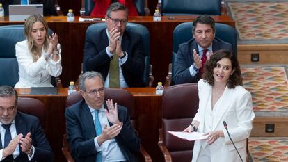 El estruendo que acompaña a esa declaración es tremendo, pues estallan los aplausos en la bancada del PP. Pero hay silencios aún más ruidosos. Ruidoso era el silencio de Rocío Monasterio, líder de Vox y madre de familia numerosa, que no ha tenido más remedio que hablar al final para admitir que es receptora del bono eléctrico, aunque ha negado que reciba el térmico, que en teoría se concede automáticamente a los beneficiarios de la primera ayuda. Y ruidoso es que nadie se refiera en el pleno a Alfonso Serrano, el número dos del PP de Ayuso, sentado en su escaño, y que también es receptor de la ayuda, además en la categoría de vulnerables severos.