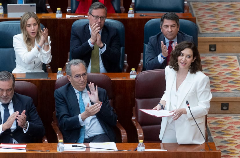 El estruendo que acompaña a esa declaración es tremendo, pues estallan los aplausos en la bancada del PP. Pero hay silencios aún más ruidosos. Ruidoso era el silencio de Rocío Monasterio, líder de Vox y madre de familia numerosa, que no ha tenido más remedio que hablar al final para admitir que es receptora del bono eléctrico, aunque ha negado que reciba el térmico, que en teoría se concede automáticamente a los beneficiarios de la primera ayuda. Y ruidoso es que nadie se refiera en el pleno a Alfonso Serrano, el número dos del PP de Ayuso, sentado en su escaño, y que también es receptor de la ayuda, además en la categoría de vulnerables severos.