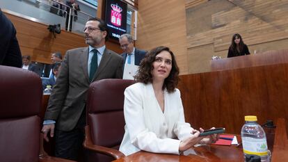 La presidenta madrileña exhibe un tono brusco en el Parlamento madrileño, en especial contra Más Madrid y UP