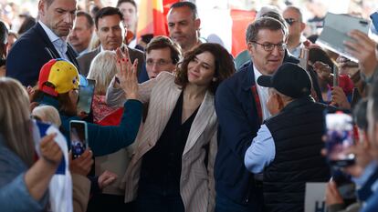 “¡Ayuso! ¡Ayuso!”, se escuchaba cuando los dirigentes del PP subían al escenario. “¡Presidente! ¡Presidente!”, se alentaba también a Feijóo. Luego, tras una breve intervención del alcalde de Madrid, José Luis Martínez Almeida, Ayuso y Feijóo han cargado contra la política exterior del Gobierno.