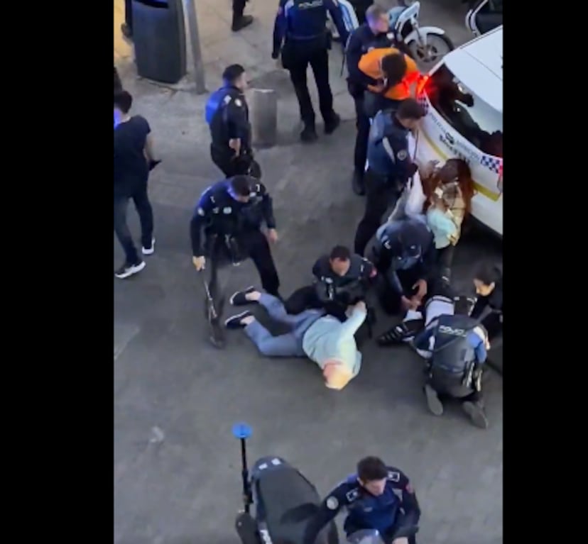 La escena propició la llegada e intervención de una gran concurrencia que puso en dificultad la actuación de los policías, los cuales hubieron de pedir refuerzos, por lo que hasta una decena de patrullas de la Policía Municipal y también alguna de la Policía Nacional acudieron al lugar.