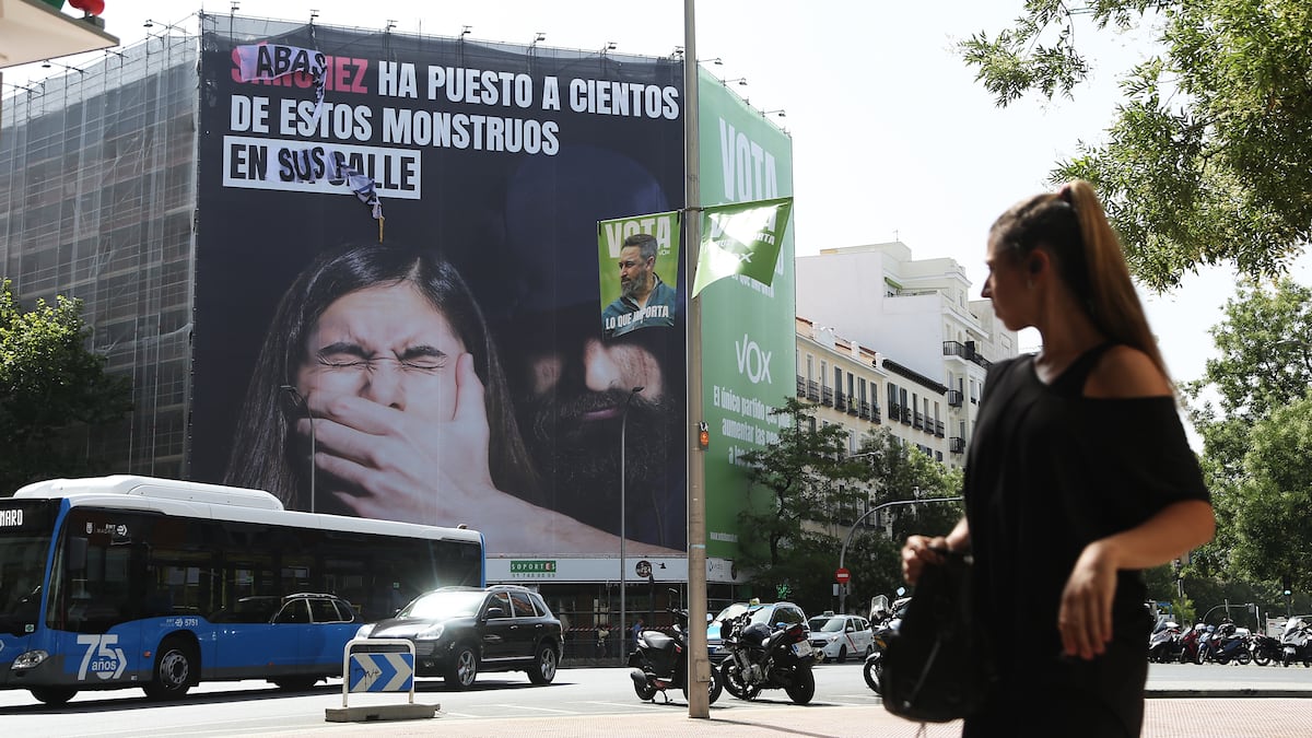 Boicoteada una lona de Vox contra Sánchez en Madrid: “Abascal ha puesto a cientos de estos monstruos en sus filas”