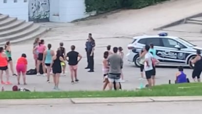 Un vecino, molesto, que algunas conocen bien, había llamado a las autoridades para poner fin a semejante espectáculo. Esto es lo que la policía les explicaba al grupo de señoras, vestidas con ropa de ejercicio y empapadas en sudor, que asistían atónitas al poder del uniforme. Se habían convertido, sin saberlo, en unas rebeldes, en un grupo de niñas de primaria reprendidas por el profesor. “Esto no se puede hacer, ya os lo hemos dicho otras veces”, se escuchaba de lejos a una agente que gesticulaba con las manos abiertas en tono conciliador. Mientras, algunos vecinos gritaban a lo lejos: “Dejadlas en paz”.