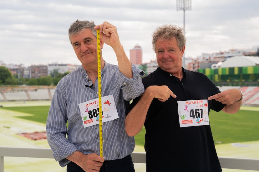 Juan Luis Cano y Guillermo Fesser también van a recorrer la maratón “más corta del mundo”, según la definen en la Fundación. “Queremos que sea una jornada divertida y para toda la familia”, cuenta Cano. “No sé cómo se nos ocurrió, pero nos parece original y diferente, es algo que nos caracteriza a la fundación”. Los periodistas han organizado antes otros eventos para recaudar dinero: un festival de flamenco, otro de monólogos, unas veladas donde podías ir al Mercado San Miguel a tomar cañas tiradas por celebridades o espectáculos de magia. Todos bajo el sobrenombre de Pa Tós.