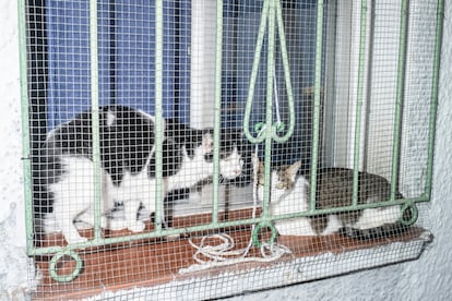 Dos tramos de escaleras ―el primero de 10, el segundo de dos― conducen a las dos habitaciones del piso superior. Hay un televisor en cada estancia. También muchos libros. “Por las mañanas madrugo y hago la comida, dejo la casa arreglada y salgo a andar. Por la tarde leo, coso… para pasar el tiempo. A las ocho me subo a la habitación. Aquí me siento más acompañada. Abajo me siento muy sola”. Se sienta en la cama y pierde durante unos instantes la mirada.