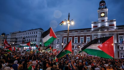 Unas 10.000 personas, según la delegación del Gobierno, se han manifestado este domingo en Madrid para protestar contra la respuesta de Israel a la masacre de Hamás, en una de las mayores muestras de apoyo al pueblo palestino en la capital en los últimos años. La marcha, que ha partido de Atocha a las 18.00 y ha acabado en la Puerta del Sol, ha tenido lugar mientras el mundo contiene el aliento, pendiente de una inminente intervención israelí en Gaza.