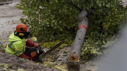 La tala de más de 500 árboles por la ampliación de la línea 11 de Metro de Madrid ya ha comenzado, a pesar de que el proyecto está recurrido en los tribunales. El Gobierno regional ha empezado este lunes a cortar ejemplares tras obtener la autorización por parte del Ayuntamiento de Madrid y la declaración ambiental favorable emitida el 14 de noviembre por la Consejería de Medio Ambiente, indican fuentes regionales. Motosierras en mano, los operarios han empezado sobre las diez de la mañana por la zona de Madrid Río, en Arganzuela, y por el barrio de Comillas, en el distrito de Carabanchel. Las moreras cercanas al antiguo barco pirata en Madrid Río han sido las primeras en caer.