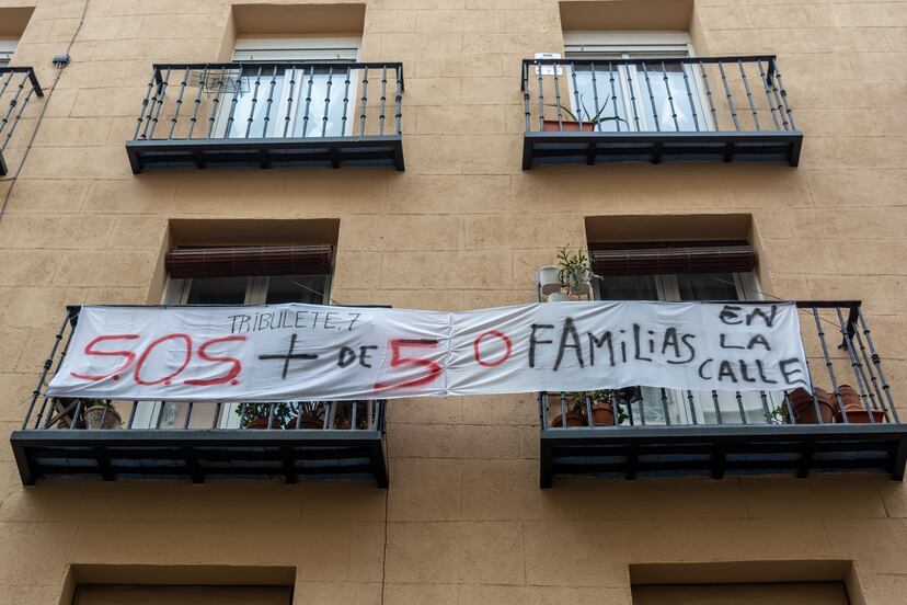 Es posible que la situación en el inmueble de la calle de Tribulete, 7, en el corazón del barrio de Lavapiés, vaya a ser complicada. Este edificio se ha convertido en una trinchera contra la especulación inmobiliaria y los alquileres abusivos. Cuando se enteraron por la prensa de que la empresa planeaba adquirir el bloque, comenzaron a organizarse. Habían seguido de cerca el destino de otros vecinos del barrio y de otras zonas de Madrid, como los de la calle de Galileo. Hicieron asambleas, llamaron al Sindicato de Inquilinas y se plantaron. Llevan semanas preparándose. Fue entonces, el viernes 2 de febrero, cuando “el enemigo” tocó el timbre.