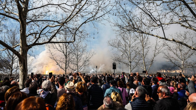 El presidente de la Comunidad Valenciana ha celebrado el espectáculo ante las cámaras. “Para aquellos que hablan de ruido espero que hayan venido y se hayan dado cuenta de que esto es una sinfonía perfecta, que mezcla musicalidad, ruido y emoción. Esto es cultura”, ha afirmado Mazón. La alcaldesa de Valencia también ha sonreído. “Ha sido un disparo muy profesional. He visto la bandera de Madrid, España y la Comunidad Valenciana y me parece uno de los gestos más bonitos y simbólicos”, ha dicho, tras tomarse fotos con las falleras mayores y sus comisiones. Al costado norte de las vallas, la concejala Sara Ladra (Más Madrid) ha reprochado el acto. “Es una pésima idea para la fauna, para la biodiversidad. No olvidemos que esto es una apuesta electoral entre el alcalde Almeida y la alcaldesa de Valencia”, ha dicho Ladra y ha recordado que, hasta ahora, no se conoce el expediente de contratación con los detalles del evento. “Seguimos sin acceso al expediente, cuando lo tengamos valoraremos acciones judiciales si es necesario”, ha agregado.