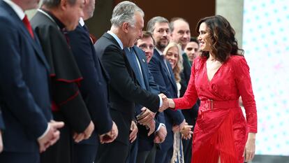 La ausencia de Núñez Feijóo, sin agenda pública este jueves, acompaña a la presidenta regional como un fantasma, aunque una fuente de su confianza la excusa sin darle más importancia y con el argumento de que el líder se toma un descanso antes de las campañas para las elecciones catalanas y europeas. Que a la Real Casa de Correos no acudan tampoco otros pesos pesados del partido, como la secretaria general, Cuca Gamarra, o el portavoz en el Congreso, Miguel Tellado, sorprende hasta en las filas populares. Con la presencia del presidente del Senado, Pedro Rollán, como mejor explicación de esas ausencias, los partidos siguen explotando sus debilidades y fortalezas en un choque continuo. Tiene que ser uno de los premiados quien pida que eso pare.