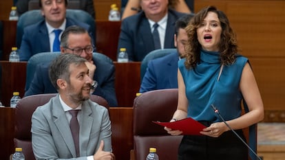 Ayuso también aprovecha el pleno para acusar a la izquierda de premiar el terrorismo de Hamás con el reconocimiento del estado de Palestina, anunciado este martes por el presidente Sánchez. “Pretenden que las democracias hagan con Hamás lo mismo que con ETA”, dice la presidenta regional. “Tú mata, que yo te daré una comunidad autónoma. Tú mata, que yo te daré un Estado”, añade. Luego, Ayuso se marcha. Se ha hablado de Argentina. De Palestina. De Israel. Del Gobierno de España. De Madrid, durante la sesión de control a su presidenta, nada.