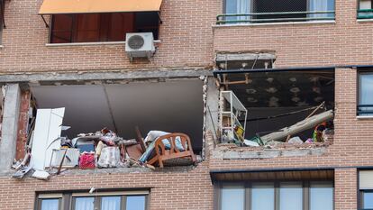 “Mi casa está inhabitable. Espero que mis vecinas estén bien. Ha sido una barbaridad”, ha relatado esta mañana, aun en estado de shock, la vecina de enfrente de un piso que ha saltado por los aires la pasada madrugada en Madrid a causa de una explosión de gas aparentemente fortuita. En el suceso, ocurrido sobre las cuatro de la mañana en una vivienda del distrito Fuencarral-El Pardo, han resultado heridas graves mientras dormían dos mujeres, madre e hija de 75 y de 42 años, por las llamas de la deflagración y por la caída de escombros, según ha informado a este diario una portavoz de Emergencias Madrid. Además, el Samur ha atendido a otras tres vecinas, de 25 y 54 años, que sufrían una fuerte crisis de ansiedad. Aunque la estructura del inmueble no está comprometida, los bomberos municipales han desalojado a todos los vecinos de cinco plantas, desde la novena, donde ha ocurrido la explosión, a la última, la 13, ya que no tienen suministro de agua, ni de luz, ni de gas.