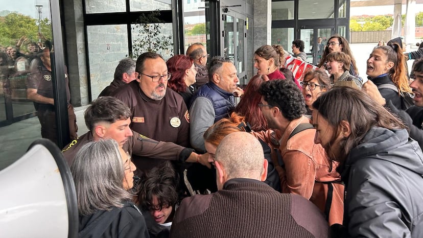 Al grito de “vergüenza, mucho rectorado, poca educación”, casi un centenar de estudiantes del grado de Lengua de Signos en la Universidad Rey Juan Carlos,se han manifestado este martes fuera del edificio de Rectorado debido a la falta de profesores en ciertas asignaturas. Los estudiantes ingresaron al campus, pero no se les permitió la entrada al edificio. Los guardias hicieron una barrera. En ese momento iniciaron los gritos, los empujones, los golpes y hasta las lágrimas, entre los estudiantes y el personal de seguridad.
