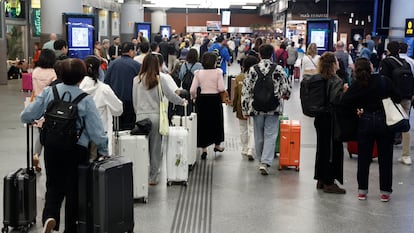 Los viajeros han recibido mensajes por correo electrónico y por mensajería electrónica en sus teléfonos advirtiéndoles de las cancelaciones y retrasos de sus trenes y las colas en los puestos de información y de atención al cliente en ambas estaciones eran largas y constantes a lo largo de la jornada. Hay 15.000 viajeros afectados, según ha explicado Óscar Gómez Barbero, director general de Negocios y Operaciones de la compañía. Hay además otros 26 convoyes cuya estación de origen o destino cambia por el cierre del túnel entre Atocha y Chamartín. Y el ministro de Transportes, Óscar Puente, ha explicado que se está trabajando para liberar al menos uno de los carriles del túnel. “No es normal que un vagón se desprenda y acabe chocándose contra un túnel. Es un hecho grave y espero que se esclarezca”, ha dicho el ministro.