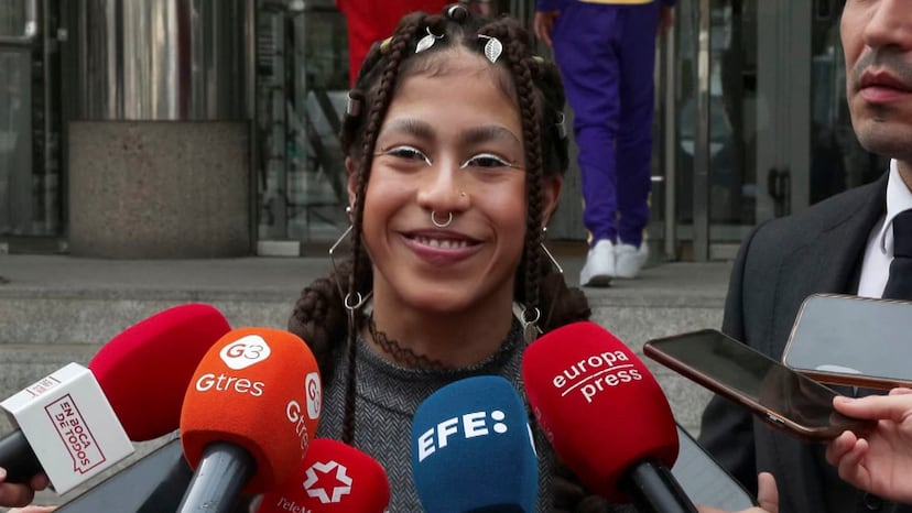 Lesly Ochoa, de 28 años, ha salido del juzgado cantando ante los micrófonos de los medios ‘Lucha de gigantes’, de Antonio Vega