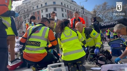 El corredor de 38 años de la Movistar Medio Maratón Madrid, celebrada la mañana de este domingo en la capital, que había sufrido una parada cardiorrespiratoria a la altura de Cibeles ha fallecido esta tarde en el hospital de La Paz, donde estaba ingresado en estado grave desde entonces, según ha informado a este diario un portavoz de la Consejería de Sanidad de la Comunidad de Madrid. Samur-Protección Civil ha atendido a dos corredores jóvenes por una parada cardiorrespiratoria cuando les faltaban unos metros para llegar a la meta, situada en Recoletos. El otro, según ha detallado a este diario una portavoz de Emergencias Madrid, es un participante de 21 años, que se ha desplomado en la propia Recoletos. Está ingresado en observación. El Samur ha atendido además a otros 50 corredores, “la mayoría por patologías traumatológicas como esguinces o torceduras, aunque también ha habido algún golpe de calor”, ha indicado la portavoz.