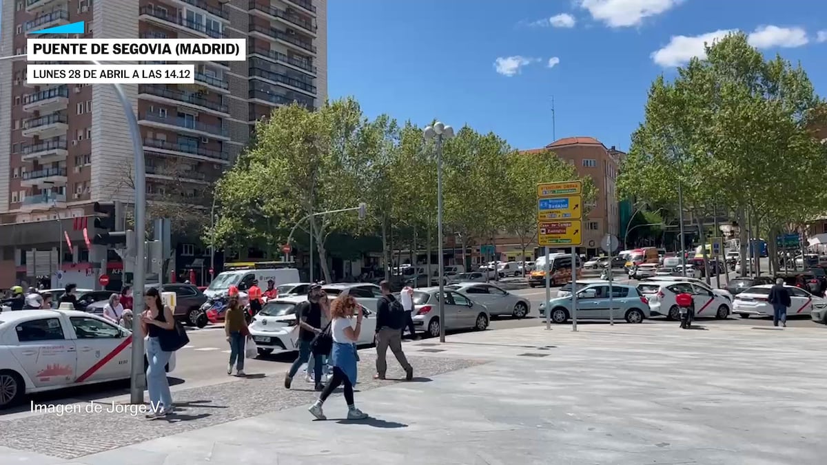 14.12. Un peatón, Jorge V., toma este vídeo en el puente de Segovia, a 300 metros del lugar donde se iba a producir el atropello. Dice que salió a la calle para registrar con el móvil aquel día extraordinario. “Era como una película apocalíptica”.