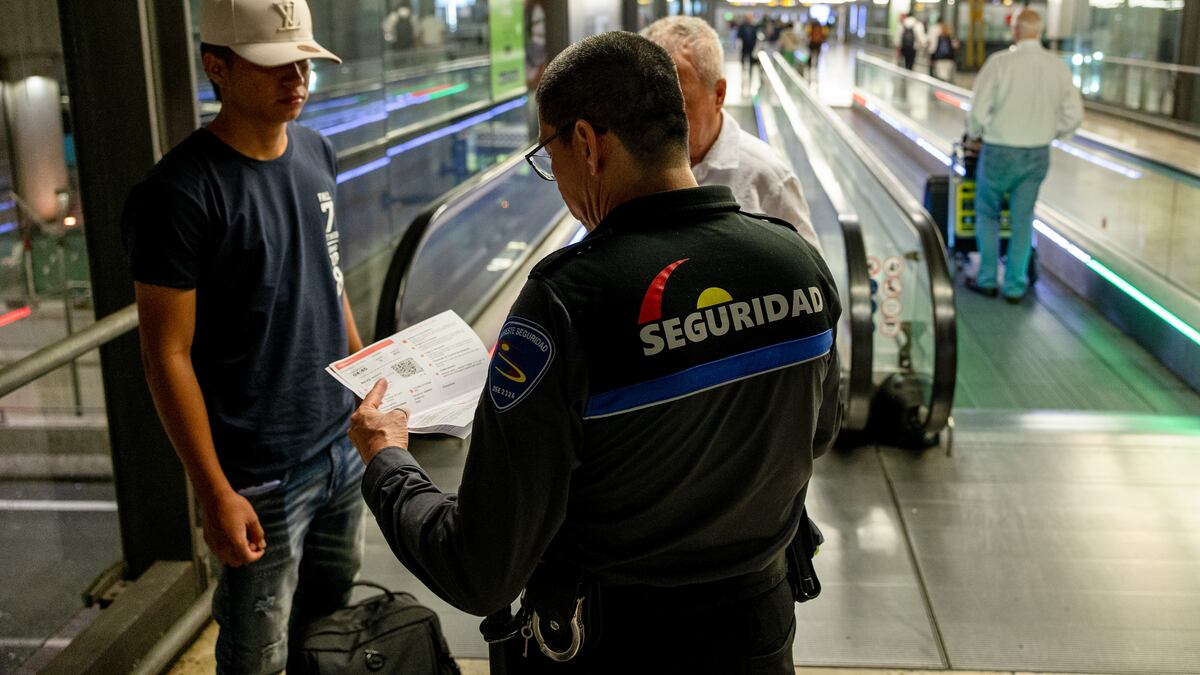 Antes de la hora prevista, sobre las ocho, en la salida del metro de la Terminal 1, 2 y 3 ya había seis vigilantes de seguridad dispuestos en fila como si fueran un muro de contención. “¿Sabes lo que tienes que hacer?“, le preguntaba el encargado a uno de sus agentes. ”Sí, ser educado, pero contundente, si no tienen tarjeta de embarque, fuera", respondía el otro. Lo cierto es que apenas se han registrado incidentes. Una buena parte de personas sin hogar fueron previsores y han llegado a Barajas antes del toque de queda.