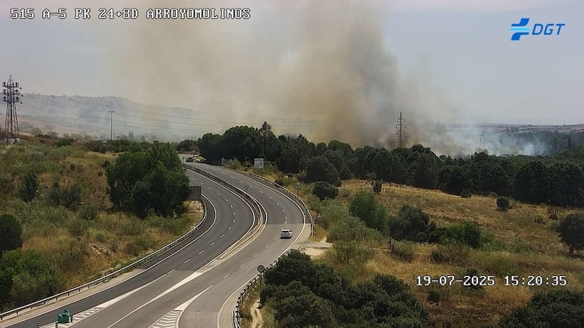 Un incendio forestal en Arroyomolinos (suroeste de la región de Madrid) ha provocado este sábado por la tarde el corte de la carretera M-413, según informa el servicio autonómico de Emergencias 112, que en cuestión de dos horas ha controlado las llamas. El fuego se ha declarado en un municipio cercano a la zona del incendio de Méntrida (Toledo), ya casi extinguido, que afectó a localidades del sur de la Comunidad de Madrid y cuyo humo llegó el jueves a la capital de España.