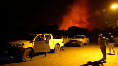 Carlos y Jimena, vecinos de Soto de Viñuelas, decidieron salir de su casa cuando llegó la Guardia Civil. “Fuera todo el mundo, todo el mundo fuera de casa. No cojan nada, no hagan maletas, fuera”, decían por la megafonía. Ambos fueron trasladados hasta una biblioteca que se habilitó para pasar la noche y como punto de reunión para cientos de vecinos de Tres Cantos que buscan información y protección en medio del incendio. “El fuego ha cambiado varias veces de rumbo, cuando nos hemos dado cuenta estábamos rodeados y es cuando hemos salido corriendo”, explica Jorge, otro vecino evacuado. El Ayuntamiento de Tres Cantos habilitó el Centro Deportivo Enrique Más para alojar a los vecinos, según informaron en sus redes sociales.