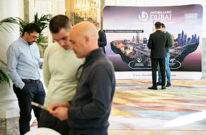 El encuentro es un viernes en horario laborable en uno de los nuevos hotelazos de superlujo de Madrid, el Mandarin Oriental Ritz. Los interesados comienzan a entrar a las 10.00 en una sala con alfombra gruesa y paredes cubiertas de madera: un chico bangladesí con una camiseta del Real Madrid, un joven español que trabaja para un fondo de inversión pero también hace sus compras personales o una rusa con tacones afincada en la capital española que llama a Dubái “su segunda casa”. Suena música techno y se sirven café y pastelitos. Se forman corros en los que pronto queda claro que Madrid se le ha quedado pequeño a estos inversores. Se habla de que Polonia es un buen sitio para comprar porque “va como un tiro”, pero al poco se acercan los "brokers" (agentes inmobiliarios) para poner orden en esta partida de Monopoly. Aquí toca hablar de Dubái.