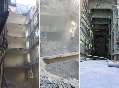 Imágenes desde el interior del edificio reflejan el desplome de los forjados de todas las plantas en una parte del inmueble. Todavía no se ha podido concretar el alcance total del derrumbe.